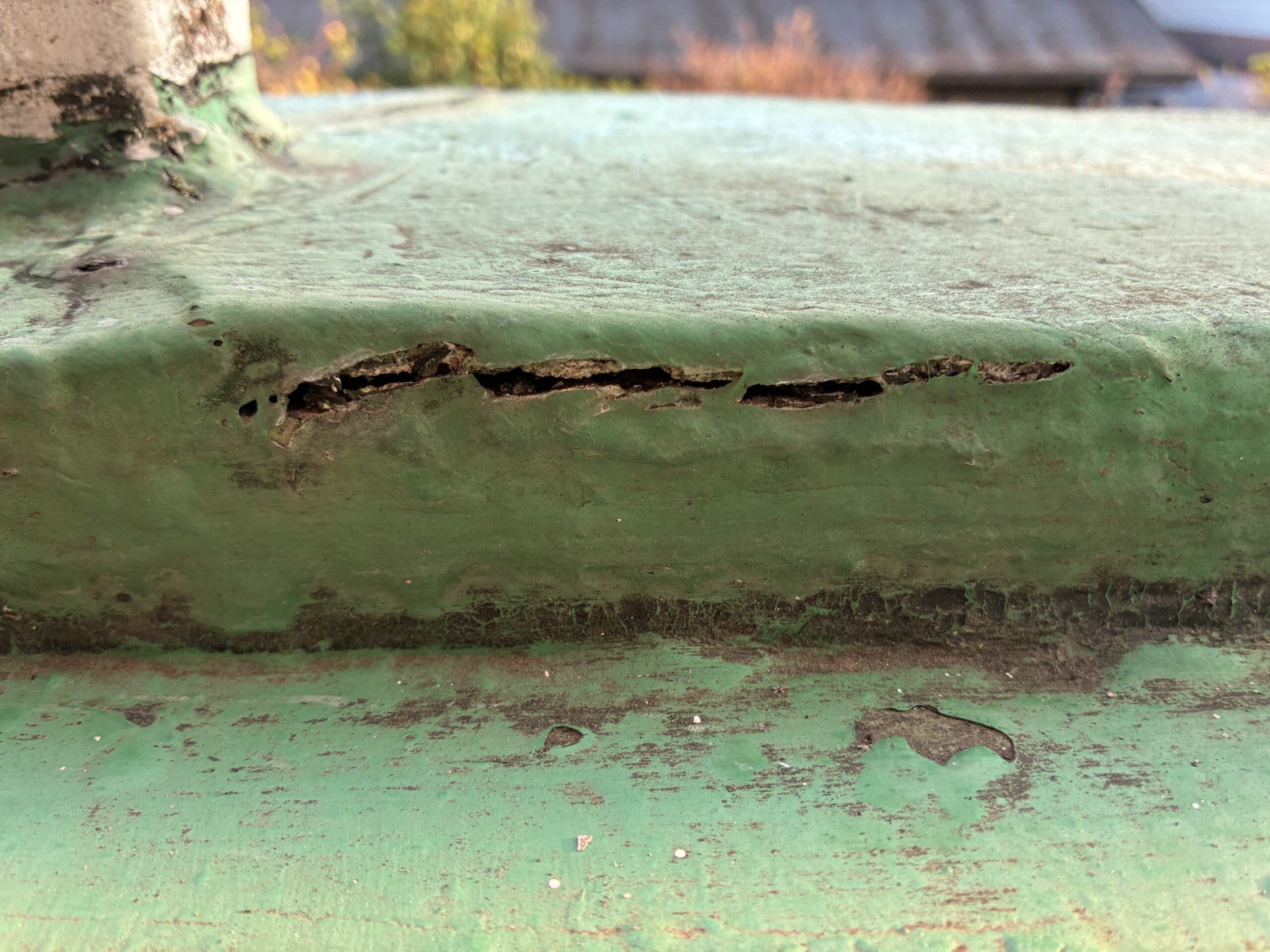 • 金属屋根:塗膜剥がれによる錆び、穴あき